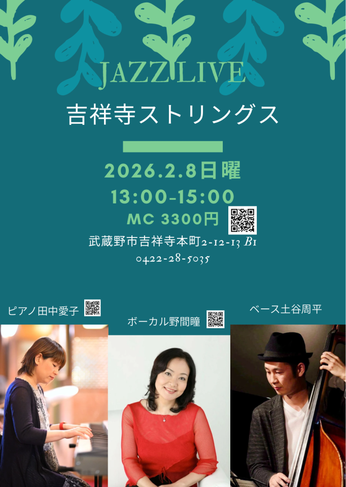 ピアノ田中愛子、ボーカル野間瞳、ベース土谷周平